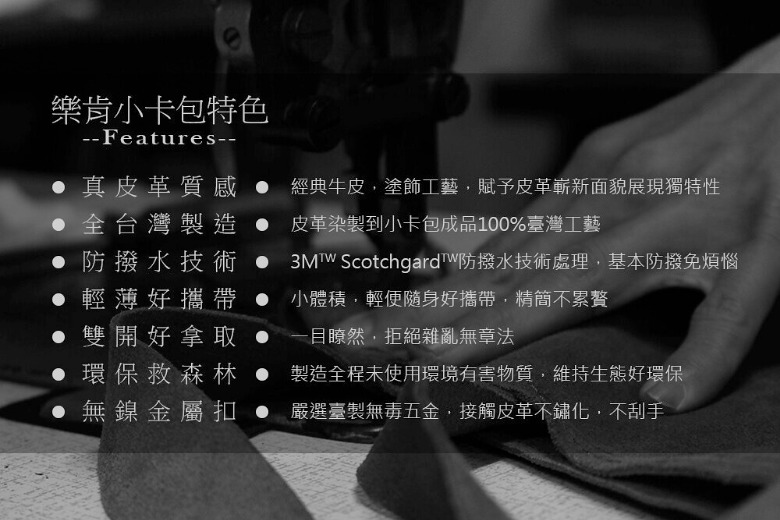 符合現代人出門只攜帶小額現金、信用卡、悠遊卡的極簡特點外,從小卡包的製程到五金素材皆使用對環境無害物質,擁有時尚便利的同時,也保護生態環境,貼身放置也不擔心對身體有害。配合政府推動行動支付輕鬆Pay,善用手機載具,提升雲端發票普及率,簡單出門又可做環保。