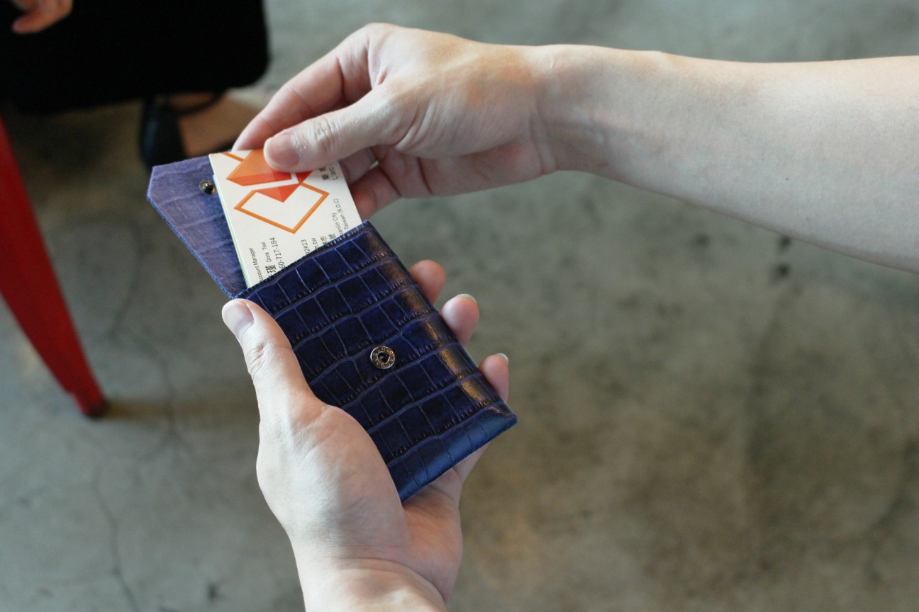 請勿使用水洗或以酒精、香蕉水等具揮發性溶劑擦拭清潔小卡包。